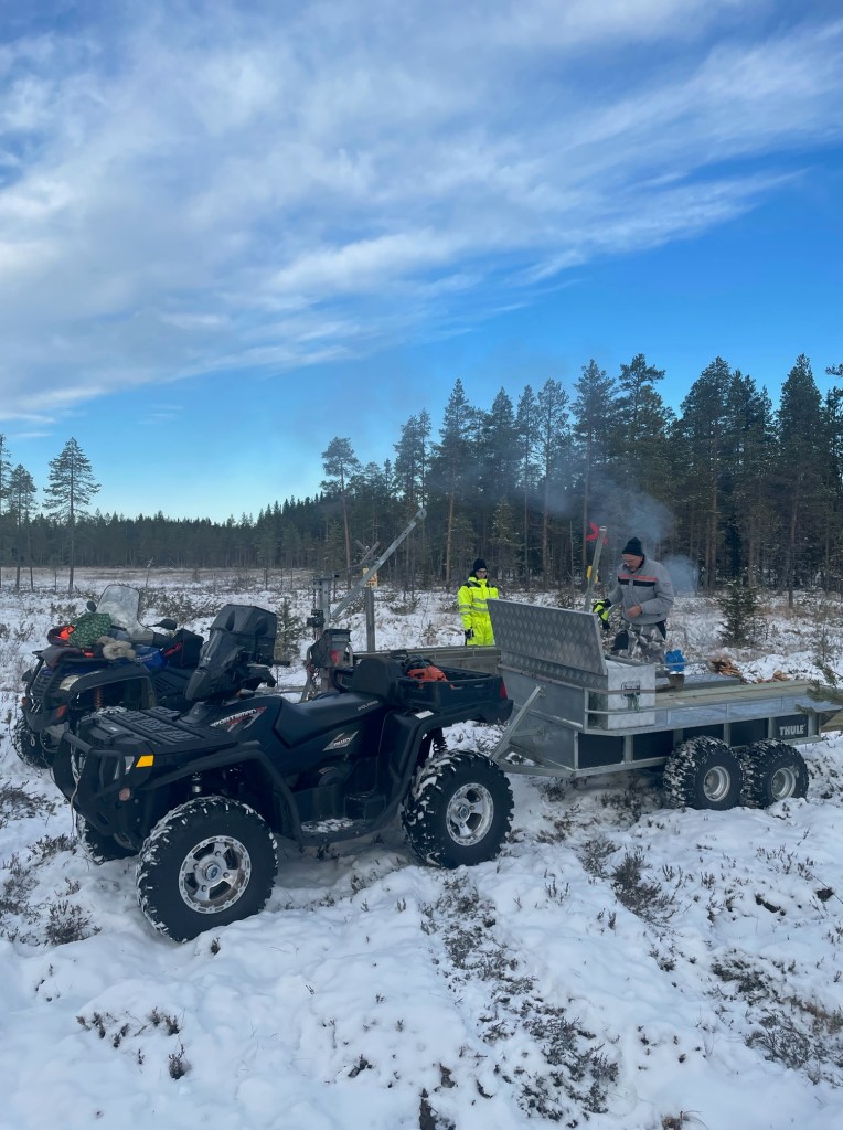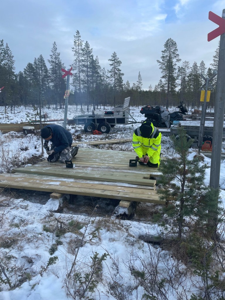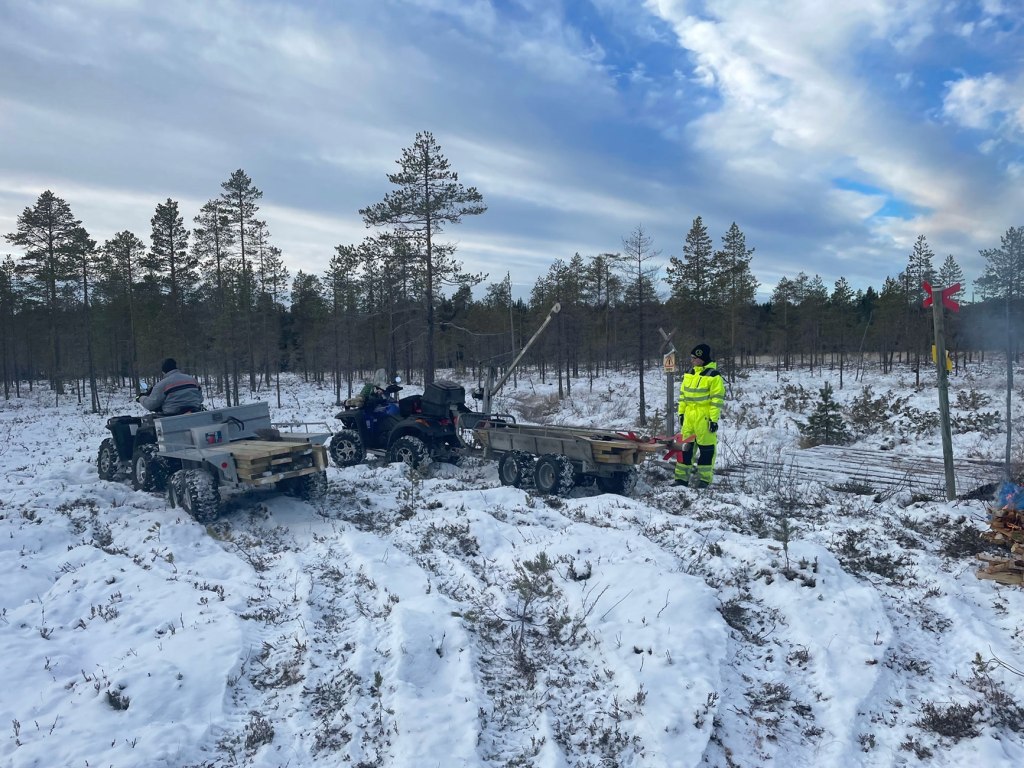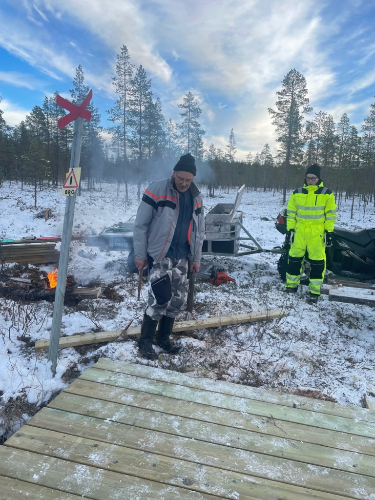 Nils-Olov, Gabriel och Peter har byggt ny en av broarna efter skoterleden vid Rentjärn. Lätt att köra ut på frysen myr med 4hjulingarna.